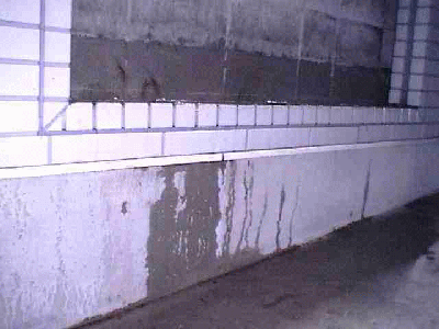 | 中澤 章行 | 単に雨漏りであるなら、屋根をかければ止まるでしょう。隣の塀(CB造)部分で下の部分が変色しているのが気になりますが、写真ではどのように写っていますか。また、隣地との隙間が側溝として処理されているのか、確認されては如何でしょうか。 写真で見る限りでは、漏水は基礎上部の水切りから漏水しているようですが。画像では基礎天端に水切りがかかっています。他の2枚の写真は水切り下にタイルが施工されています。どういう風に施工されているのでしょうか、理解できません。 |