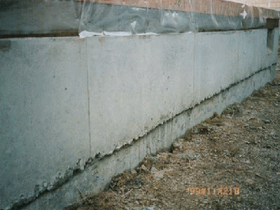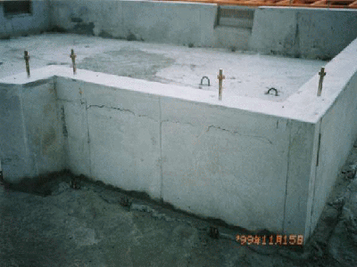 | 荻原 幸雄 | 上部水平な亀裂は全体的に出ているので津村の解説の通りコールドジョイントを起こしていると思われます。底版基礎と立ち上がりのずれは底版時の型枠の位置精度のミスで立ち上がりで修正した為、ずれた模様です。 底版基礎と立ち上がりのジョイント部はあちらこちらジャンカが見られますが、バイブレーターや突き棒で突いてコンクリートを隙間無くやる作業は無かったか、気持ちが入っていなかったものと思われます。(掛け過ぎや突き過ぎも良くないのですが)亀裂の補修はV目地で掘り込みエポキシ樹脂等で圧入してください。 ジャンカはモルタルで補修しているようですが、このジャンカをハツリ取り、再度コンクリートを打設した方が宜しいかと思います。このような仕事の場合は配筋の写真も見たいところです。 |