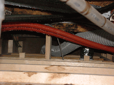 | 相談内容 | 洗面所温水用の配管からのお湯漏れ(温水器2次側)で、ベタ基礎内部が6から7cmの水浸しの状態でした。 当初洗面所の壁からの水もれが確認されたため、その上のトイレからの配管水漏れかと思っていましたが、温水が蒸気となリ1階の天井裏に溜まったものと思われます。 写真のように一面水滴だらけで、多数のカビが天井裏・床下コンパネ等に見られます。 壁の中も洗面所しか開けていませんが水滴でカビている状態です。 [業者の見解] 1週間有れば直せるとの事で、カビはどうするのか尋ねると、「拭きます。」との返事でした。 これだけのカビを拭くだけでは納得が行かないので、建築調査を行なう事をしぶしぶ了承させました。 [相談内容] カビた柱や金物はどの様に対処するべきでしょうか? 梁にも著しいカビが見受けられますが、梁の交換も絶対にするべきだと思っています。 どの様に交渉していけば良いか、今この場で何を相談したら良いかもさっぱり分かりません。 考えられる損害と対処法を詳しくお教えできないでしょうか? ![]() ![]() ![]() |