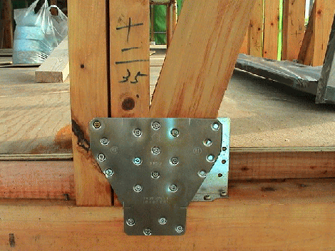 | 相談者お礼状 | 運営事務局 荻原 様 及び解説者 様 質問に対する回答ありがとうございました。 大変参考になりました。 これらの件に関して現場責任者と話したところ、Email を出した数日後に公庫の検査がありこれらの部分に関し指摘され、筋交い部分に関しては補強の金物が取り付けられていました。 また、つなぎ目のところに関してはまだ対応しておりませんが、金物補強らしきものを取り付けるそうです。(素人の私には、話だけではわかりませんでした。) 筋交いの手直し部分の写真を送付しますので、参照ください。 |