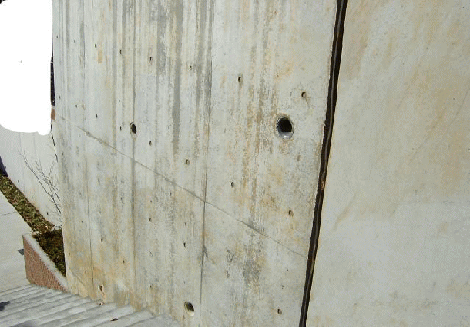 | 藤井 修 | 写真を拝見しましたがブロックではなくコンクリート擁壁ですね。 ご相談の部分はコンクリートを施工する場合、あまり長い距離ですと亀裂が入りやすくなるので一定の距離で打ち分けるエキスパンションジョイントです。 コンクリートが動きますので隙間にはクッション材を入れて施工します。 新垣解説委員の言うように、あまり心配は要らないと思います。 |