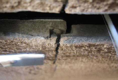 | 氏原 毅士 | 解説員の氏原です。 ニチハMT100Fは長辺が合いじゃくり(凡そ1ミリ?)とV目地。短辺はハット型の金属製目地材を使うはずです。短辺は金物の形状から8から10ミリ程度の深目地になると思います。 亀裂(隙間)が発生したとしても、写真のような不規則形ではなく直線になると思います。 ハット型目地金物を用いず、10ミリほどの間隔だけ空けて吹き付け材を施工したように見受けられます。 推測が当たっておれば、この状態でコーキングと吹きつけ補修を繰り返しても意味が無く、再発は防げないと思います。 また、サイディングを縦貼りにしているとしても、木口方向のバックアップ金物が見あたらないのと、合いじゃくりの突合せ幅が広すぎて、目地に吹き付け材が入っているのでひび割れが生じていると思います。 さらにサイディングボードが通気胴縁に固定されていないのではないでしょうか。 |
