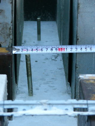 | 相談内容 | [現象] 10月23日に基礎(べた基礎)の立ち上がり部分にコンクリートが流され、翌日の24日カメラとスケールを持って写真をとってきました。実際に図ると、12cmの基礎の厚みのうちアンカーボルトを中心に片側が4cmも確保できないのが15ケ所もありました。またアンカーボルトが垂直にたってないものもいくつかありました。 [業者の見解] 「アンカーボルトが中心からずれているものが多いと思うんですが」と聞くと「中心に(アンカーボルトを固定する)鉄筋がきているから多少ずれてしまう」といわれました。 [相談内容] これほどずれていると、コンクリートの強度が落ちてひび割れないか、また、(工場でプレカットされた集成材の穴にきちんと収まらないのでは、もし穴を大きくして木材の強度が落とすのではないか、と心配なのですが、一般的にはこれは許容範囲なのでしょうか。 ![]() |