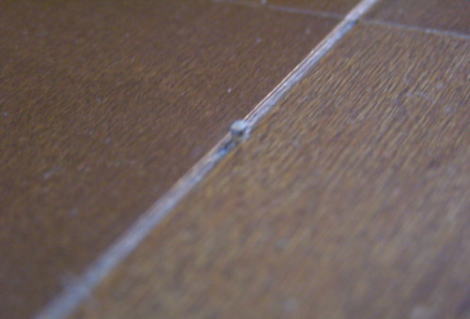 | 木津田 秀雄 | 解説員の木津田です。 写真で見る限りこの釘はフローリングを留め付けるフィニッシュ釘のようです。 この釘を止める際に、その下に他の釘(根太を留める普通の釘)などがあればそれに当たって飛び出ている事があります。そのような際には一度引き抜いて補修を行います。 フローリングの下地に合板を使用している場合には、接着剤を併用しますので、この一本が抜けたからと言って、床ががたがたになる事はありません。 抜けた穴の補修を行ってから様子を見て、がたつきなどがあるようでしたら増し打ちなどを含めて補修を考える方が良いと思います。 |