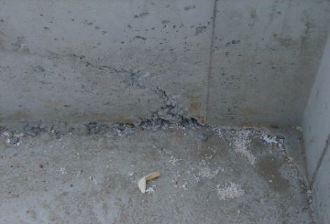 | 山口 雅克 | 解説員の山口です 全体に型枠内部の掃除を綺麗にしていないまま立上がりコンクリートを打設したか、バイブレーターの使い方が丁寧でなかった仕事のようです。 「住宅金融公庫の仕様」では型枠の存置期間は普通ポルトランドセメントを使ったコンクリートで気温15℃以上の場合は3日以上となっております。 中2日の朝ですから厳密に言うと不足していますが、この程度でしたら強度やクラックに関して心配する程ではありません。 クラックはコンクリートの宿命的なものなので全くないと言う訳にはいきませんが、その位置や大きさで心配しなければならない場合もあります。今回の写真では全体がわかりませんので、暫く様子を見て対応を考えることでいいのではないでしょうか。 ジャンカについては好ましいものではありませんので内外を問わず、しっかりと樹脂モルタルを今の時点で塗り込んでもらいましょう。単なる化粧でなく基礎の耐久性のためにも重要な事です。 「住宅金融公庫の仕様に基づいて工事を行っているとの契約」ということですが、その通りに工事をすすめる事はかなり厳しいのが一般的な現状です。建主にも分かりやすいように金融公庫監修の解説付きの「住宅工事仕様書」がありますので読んでみるといいでしょう。 心配事が増えてきたら専門家に監理をお願いするか、要所を現場に同行してもらって診てもらうことをお薦めします。 |