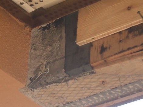 | 畔上 廣司 | 解説委員の畔上です。 6枚の写真を拝見しました。 業者による定期点検結果や団地内住人の申し出によって時々広範囲の修繕工事が発生すようですね。以前、屋根瓦の剥がれと漏水で同じような2×4団地数十戸の復旧工事を見たことがあります。バルコニーを解体し、新たに復旧工事した今回のケースは、バルコニー下地等に何かしら大きな要因や問題あって修補に踏み切ったものと考えられます。 さて、1番と2番、4番の写真は面一の天井面仕上げとなって、3、5、6番の写真は下り壁がついているようですが、納まりが2種類あるのでしょうか。 漏水痕の写真、特に3番写真は新旧の染み、4番、6番写真の染みは新しいものに見えますね。相談内容から予想判断できることは、@バルコニー床の防水層破損によるもの、A上げ裏天井パンチング仕上材からの雨風の吹上げ現象によるもの、B防水紙貼りの下地重ねしろが適切であったかどう か、あるかどうか、C外内部何かしら影響による水滴と黒ダレ腐朽現象の発現、等が考えられます。 結露を原因とした影響は少ないように思われますが、地域性によっては考慮する必要もあるでしょう。1番目の写真の亀裂は、モルタル仕上げ(モルタル金鏝押え?)の調合や仕上げ厚さ、ラス下地材等の仕様が分かると解決すると思います。 2番目の写真は問題ないと思いますが、ベニヤ板がふやけているようであれば交換しましょう。また、上部床からの漏水の原因調査を行なう等、仕上げ工事を行なう前にバルコニーの水張り試験をおこなう等の必要性があるかもしれません。 何れにしましても、現資料から的確な回答は難しいところです。確かな現状復旧と原因究明をご希望する場合、第三者の建築専門家に現地確認してもらうなどで判断したら如何でしょうか。 |