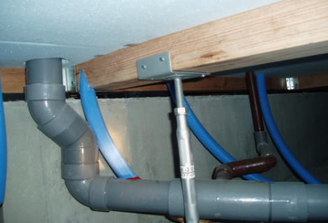 | 星 裕之 | 解説員の星です。 外部への給排水管接続は基礎を打つ時にスリーブを入れ後に配管を通せるように施工します。このような形で土台を切り欠くことはあまり好ましくありません。 大引は大きく欠きこまれていますので何らかの補強が必要です。 電気配線の上に給水管が宙ぶらりんに載っていたり、それぞれの管がきちんと釣られてなかったり、排水管の下がきちんと補強がなされていなかったりちょっと手荒な施工を言わざるを得ません。 床下は点検の際に通路として使用しますからきれいに整理してほしいものです。 施工中とのことですので、配管をきちんとやり直してもらったほうが良いと思います。 |