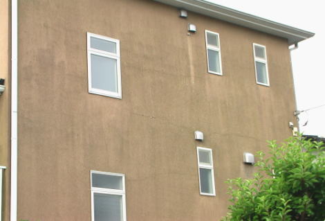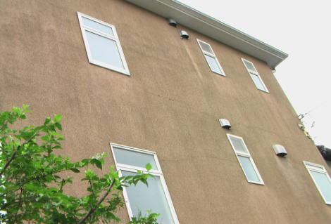 | 清水 煬二 | 解説員の清水です。 このヒビは塗装が原因では無いでしょう。 2×4工法では、2階の床と3階の床の外壁に接する部分に大きな構造材を使います。この木材が年数とともに乾燥して縮みます。 そのため、室内側には隙間が、外壁モルタルにはヒビが生じ易いのです。 また、北側に多いのは陽当りが悪いので、工事中にモルタルが乾燥しにくいことと、窓などが少ないことでモルタル自体の収縮によるヒビが大きくなることも関係していると思われます。 写真から推定すると、この塗料は弾性リシンといい、多少は収縮して少しのヒビなら吸収しやすいのです。 塗料が悪いわけではありません。 このハウスメーカーの○○ホームの現場監督から数年前に聞いた話では、外壁モルタルのヒビのクレームが多かったようです。 現在は、モルタルの防水下地を特殊なものを使うようになって、かなり減ったという話でした。 今回のヒビから雨が中まで染みているかどうかは、写真や簡単な目視ではわかりません。 塗料も剥がれているようですから、補修した方が良いのは明らかです。 2×4工法の場合、釘の本数や打ち方が悪いということで、ヒビが生じやすくなることはありますが、外観目視ではハッキリ断定できません。 今後、このヒビの幅(長さではなく)が大きくなるようなら注意が必要ですが、ひとまず塗装で補修されて様子を見たら良いでしょう。 |