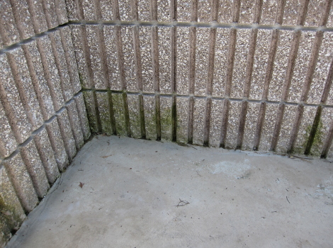 | 荻原 幸雄 | 道路側からみて左にコケの跡が多くみられます。 土間とブロックの間から水が浸入していると考えられます。 左側上部は植栽やジャリで雨水がそこに浸透し、基礎の下の深さが浅いので水が浸入している可能性がありますが、しかし、擁壁は本来はブロック部位から水を積極的に排出するのが正解ですが、どちらにしても排水溝を設けるか、水がたまらないように土間の傾斜を多くして、土間の乾きを早くする必要があります。 凍結の多い地域では排水溝をブロックの側に回して道路の側溝に排出してください。 勿論排水溝も勾配が道路まで必要なので、入念にするように指示してください。 |
