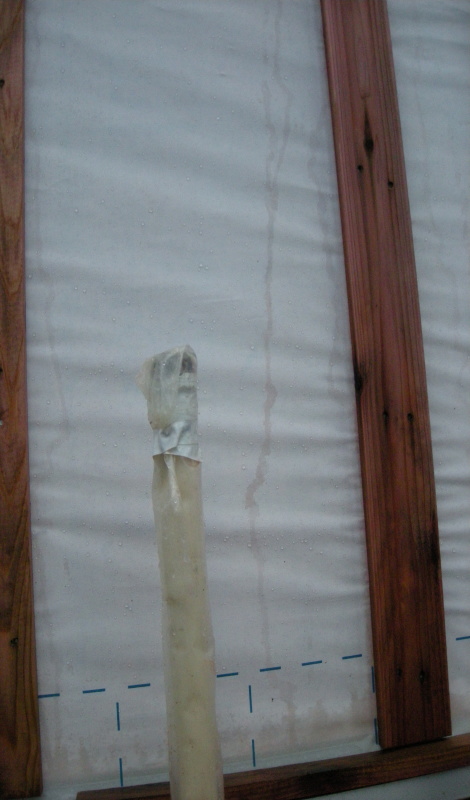 | 相談内容 | 現 象: 従来工法に2x4を足した工法です。 サイディング(下:ニチハ16mm横貼り。上:ニチハ16mm縦張り)(外壁通気工法)です。 ≪現象@≫ 胴縁(ACQ材)を打った後、ゲリラ豪雨があり、その後も3日雨続きでした(再度大雨もあり)。 ・雨水がシートの裏側にまわっている。 ・雨水がシートの裾から浸水している。 ・雨水の入口がない(ように見える)のに裏面に浸水している。 ・胴縁の周りなど茶色く変色している。 ≪現象A≫ 胴縁(ACQ材)に黒カビが出ている。 (胴縁を打つ前から。メーカーによると製品の性質上黒カビは仕方がないとのこと) ≪現象B≫ 胴縁の釘が小さいのと大きいのと二種類打ってある。 相手の意見: ≪現象@≫ ・従来の現場と比べて特別に悪いということはない。大丈夫だ。 ・浸水は、胴縁とシートが化学反応して防水効果が失われた結果のものではなく、シートとシートの隙間から入り込んだものと考えられる。 ・事故があったのはAAC材とBAAC材であり、ACQ材は濡れてもシートと化学反応は起こさない。 ≪現象A≫ ・胴縁(ACQ材)に黒カビが出るのは製品の性質上やむを得ない。 ・通気工法なので、乾いて黒カビは減少していくので問題ない。 これまでの対応から営業も現場監督も信頼できる方々だと思っています。 相談内容: お忙しいところ申し訳ありません。よろしくお願いいたします。 @透湿防水協会、ニチハ等の各メーカー、日本金属サイディング工業会のHPに『重要なお知らせ』として『防腐胴縁が工事中に雨に濡れると透湿防水シートの防水性を低下させ雨水が防水シートの裏面側にまわる恐れがあるので濡らさないように注意してください。』とあります。我が家の場合(写真)、ゲリラ豪雨でかなり濡れて雨水がシートの裏側に入ってしまいました。 @この原因は防水効果が低下したことによるものでしょうか。それとも、普通によくある浸水で、乾けば問題ないのでしょうか。 Aもし防水効果が低下してしまっているとしたら、どんな悪影響が考えられますか。例えば、サイディング裏側に発生した結露水などが、胴縁〜透湿防水シートを通じて壁側に入ってしまい、断熱材(防湿フィルム付き高性能グラスウール厚105)にカビを発生させる等。 B透湿防水シートは、ごく一般の現場で雨が降れば、写真のようにシートの裾から裏面に水を吸い上げたり、シートの裏面に浸水したりする性質のものですか。 C胴縁の黒カビは問題ありませんか。 D胴縁の釘は最初は銀の細い釘だけでしたが、数日後に見ると太い黒い釘も打ってありました。釘の打ち方は問題ないですか。 Dこのままサイディング工事を進めるうえで、注意する点はありますか。 宜しくお願いいたします。 ![]() ![]() |